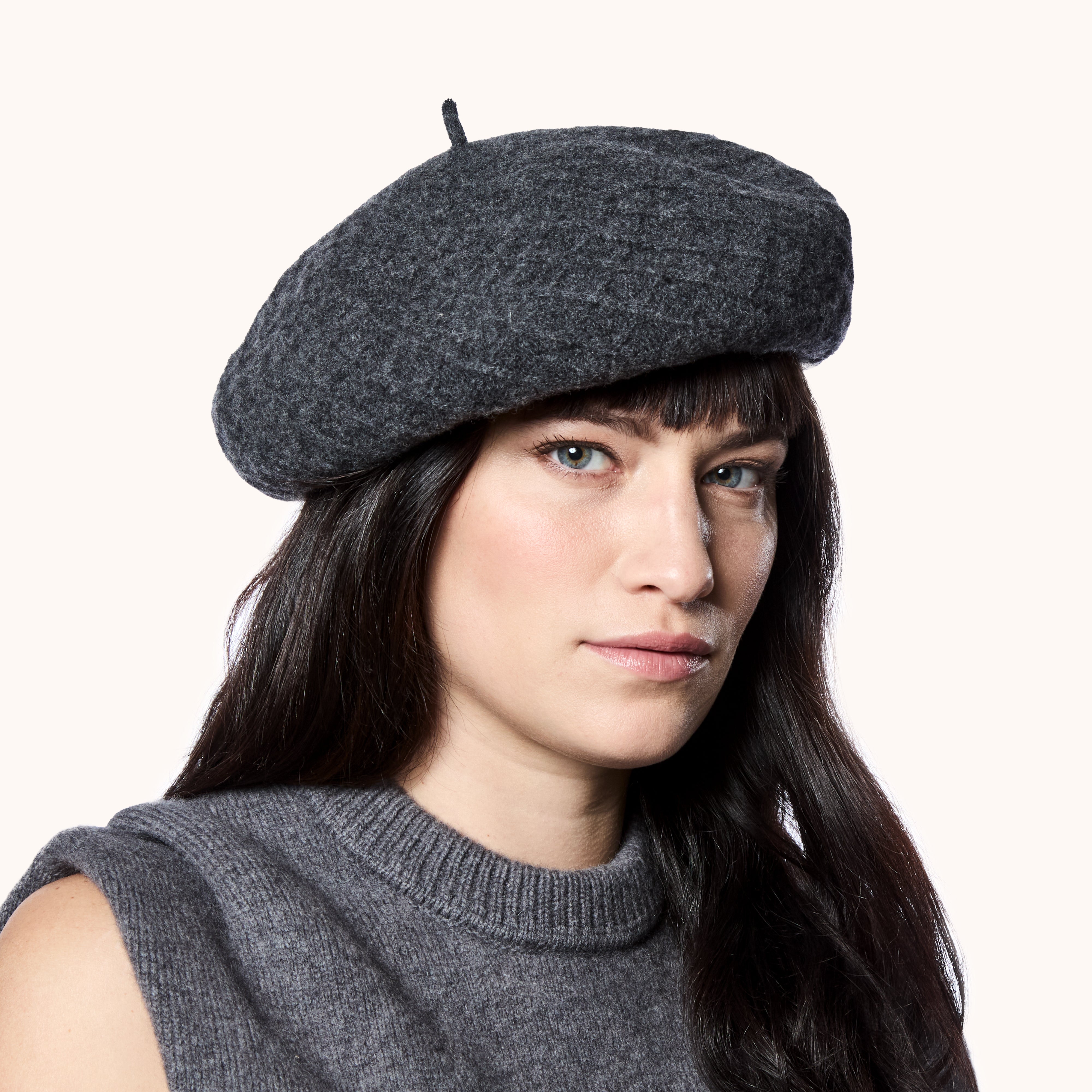 Add a little twist to your outfit with this fun and wonderfully knitted beret displaying a creative waffle-like pattern. Made with 100% wool, this beret can be pulled down over the ears on colder days. Easily adjust it with adjustment straps.