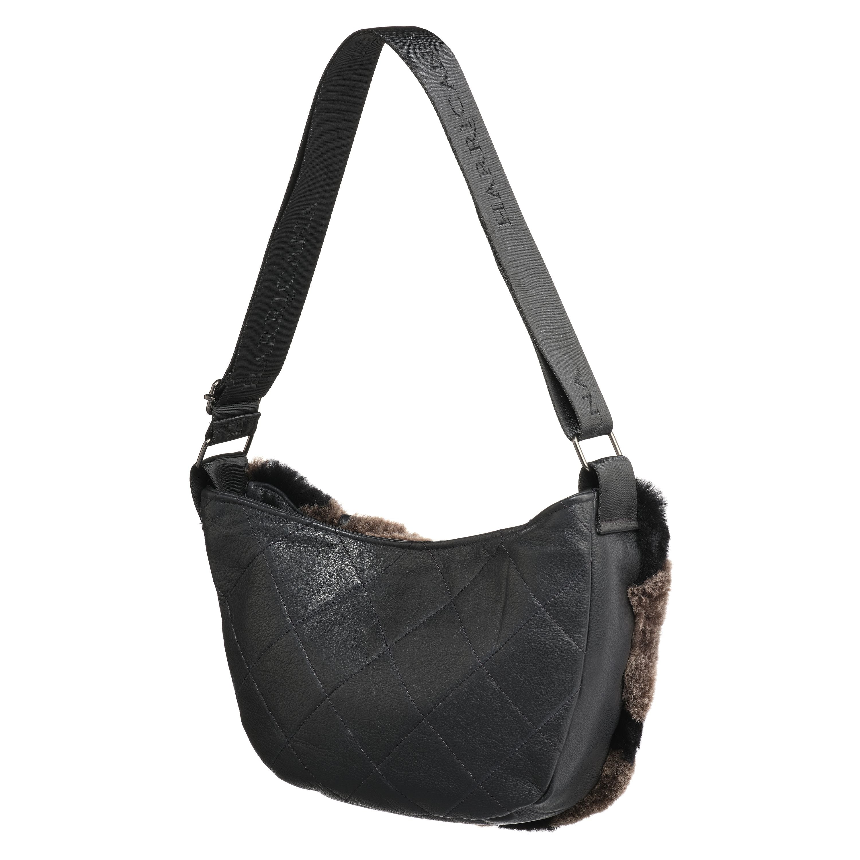 Exude timeless elegance with the Moon S satchel bag, a stunning handbag that fuses premium shearling and genuine cow leather. This purse can be worn over the shoulder or cross-body thanks to its wide, adjustable strap featuring Harricana's signature jacquard logo. The quilted leather backside adds texture, while two interior pockets and magnetic closure ensure practical functionality for the modern woman. Each uniquely handcrafted bag showcases exceptional Montréal craftsmanship with superb interior finishing and the beautifully redesigned Harricana charm.